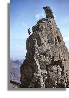 He was a marvellous pet and I feel sorry for country kids who grow up without a dog (but then I'd grown up in a menagerie!) especially in a place like Lagganmore with its Highland hills all round, rivers to fish in, lochs for swimming, and the safe sanity of a close-knit community. I saw my own childhood freedom inherited by John and Isobel and rejoiced therein. There were odd times when I was in the doghouse though.A boyhood below the Ochils had led me to bigger hills in my last school years when I'd push off on my bike (why weren't mountain bikes invented a decade earlier?) and work my way in a great Highland circuit, exploring, camping, hostelling and, eventually, Munro-bagging quite consciously after my parents had given me a copy of "Hamish Mountain Walk". That book has a lot to answer for. There were several of us who were enthusiastic the hills but I tended to be the ringleader, and far too prone to be beguiled into adventures and misadventures by someone starting, "Alasdair, I dare you ...."