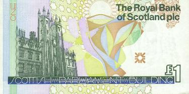Scottish Parliament Commemorative Bank Note (Reverse) The reverse of the commemorative note shows a vignette of the exterior of the temporary Parliament Buildng and an abstract image based on the floorplan of the new building planned for Holyroodhouse. Some of the text on the note is in the style used by the architect of the new building, Enric Miralles.
