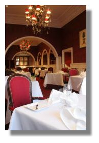 The fresh new look in fact recreates the colour scheme and style of the original restaurant of 30 odd years ago. Enter through the pillared reception hall into the oh-so-classy and sophisticated cocktail bar. It has that moody romantic ambience of a bar in downtown Manhattan. The colour is a rich burgundy red and polished dark wood. A line of high back leather stools line the long bar, beyond which are intimate chairs and tables, perfect for that martini, shaken not stirred or a flute of ice cold champagne. A new addition is the piano in the corner, entertaining diners with a medley of soft jazz or light classical, depending on the time of night. From the lounge bar, there are a couple of steps up to the restaurant itself. This is a rather grand room decorated in classic Georgian red, glittering chandeliers and white linen tablecloths, all set for a first class dinner to follow.