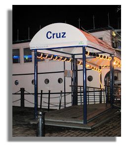 The new owners of the renamed Cruz are restaurant entrepreneur Matthew Tabatabaie (owner of De Niro and Ti Amo, two popular Italian restaurants in Edinburgh) and Sassan Pour, an architectural engineer. They have invested over £1 million in interior design and refurbishment to create a piano bar, dance floor, top deck restaurant and outdoor terrace. Now painted a bright glossy white, with a smart canopied entrance by gangplank from the harbour wall to the ship, this is certainly an alternative and quirky place to enjoy a drink or meal.