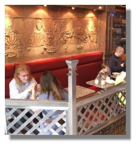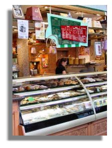 The marble counter is the centrepiece of the eatery, but customers who don't fancy perching on stools can eat at tables near the entrance, but these are snapped up quickly.Wine and huge bottles of champagne line the walls, and customers can also buy other treats including olive oil and pasta if they want to take home some real Italian food. The decor is slightly tacky (plastic ivy dangles from the walls painted with murals), but endearingly so, and the general atmosphere is one of cosiness.