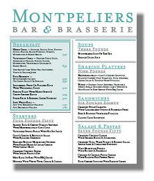 Breakfast at Montpeliers is an institution - and so popular at the weekends that breakfast turns into Brunch on Saturday and Sunday and served all day from 9am to 6pm. This is where to come any day of the week for a serious Mixed grill fry up or Eggs Benedict with smoked salmon. With a spicy Bloody Mary on the side, this is the antidote to a late night on the town. Enjoy Fairtrade coffee or try the Montpelier smoothie - apple juice with fresh kiwi, mango, melon, pineapple and yoghurt.Drinking is much of an occasion here as eating so join the sophisticated Cocktail brigade for Hemingway's favourite Mojito stuffed with mint leaves, Mexican lime, Appelton white rum or the girls may go for a pink Cosmopolitan - Absolut Citron vodka, cointreau, cranberry and fresh lime. Just as the provenance of food is important here, so is the standard of gin with Hendrick's Gin which is distilled in Ayrshire. Beer drinkers will relish the choice of the mouthwatering list of premium brand names including the new wheat beer Grolsch Weizen, as well as the usual suspects, Pilsner Urquell, Peroni, Budwesier, Belhaven, Tiger and Stella. For wine drinkers, there are five wines served by the glass (small and standard) and a worldwide selection from Australia to South Africa.