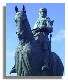 Kippen is a charming little village just 8 miles west of Stirling, nestled at the foot of the northern edge of the Campsie Hills, enjoying views to the Highlands to the north. Kippen is thus an ideal base for visiting Stirling Castle and other historical sites nearby such as Bannockurn Heritage Centre (that's the statue of King Robert the Bruce in the graphic), the Wallace Monument, Doune Castle (just as famous as the set for the films "Ivanhoe" and the British comedy "Monty Python and the Holy Grail" as for its history), Dunblane Cathedral and also for visiting scenic attractions such as Loch Lomond and the Trossachs, including Loch Katrine and Inchmahome Priory on an island in the middle of the Lake of Menteith.