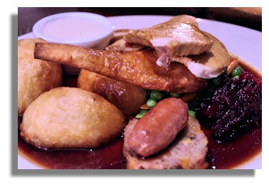 Even though it was two weeks before Christmas, I eventually opted for the roast breast of turkey (with apricot and sage stuffing, roast potatoes, cranberry compôte and bread sauce). In other words, turkey and all the trimmings! As you can see, the portions are generous - a dish fit for a King of Kippen indeed! The aim is to satisfy the hearty appetites of the locals (many of whom are farmers) as well as hungry travellers. What are not easily visible in the photo are the fresh peas, carrots and broccoli hidden beneath the turkey slices. And that's a roast parsnip adding to the picture (and the taste). The turkey was the real deal, with slices carved from a nicely roasted bird and the vegetables were cooked just right. And the sauce (ok, "jus") was light and well flavoured. I must admit that the generous portion size had me struggling towards the end - and I also knew I just had to have a dessert (so that I could write about it in this review, you understand)!