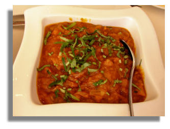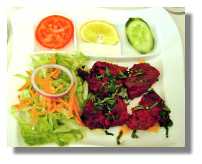 But back to that menu - our task was to select a starter and main course from the mouth-watering selection. How about King Prawn Partha with Puri - king prawns in a subtle sauce, enhanced by fresh coriander, on a bed of puffed fried bread and accompanied by salad? Or Macher Bora - a selected variety of fish kebabs served with a special sauce and accompanied by salad. In the end, I went for the Boti Kebab. This was lamb kebabs served with special sauce and salad. Once again, presentation was first class - as you can see from the illustration. The attractive look of the dish was confirmed with the nicely tender and spicy lamb kebabs, with the flavours building up with each mouthful. My lunch companion, who is particularly keen on spicy food, had opted for the Murgh Chatt. This consisted of small pieces of chicken, cooked with tomatoes and cucumber, in a hot and spicy sour sauce. For local Scottish palates, Indian restaurants often tone down the degree of spiciness, but this one was declared to be satisfyingly hot by my companion.