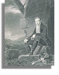 In the 19th century, the romance of Hermitage appealed to the imagination of Sir Walter Scott. When he had his portrait painted by Sir Henry Raeburn, Hermitage can be seen in the background. Scott's publisher Archibald Constable, commissioned the portrait from Sir Henry Raeburn. Conceived with reproduction in mind, in the next ten years it became the most frequently engraved and widely circulated image of Scott. For the first time Scott is explicitly personified as a poet in a setting full of allusions to his own work. In the background are the hills of Liddesdale and Hermitage Castle, which are featured both in Marmion and Minstrelsy of the Scottish Border.When his publisher Archibald Constable was bankrupted in 1826 the painting was purchased by Scott's patron the 5th Duke of Buccleuch. In a letter to the Duke in 1826, Scott wrote: 'I must say I was extremely gratified by seeing Raeburn's portrait (which was like what the original was some two or three years before your Grace was born) hanging at Dalkeith and feel sincerely the kindness which placed it there. One does not like the idea of being knocked down even though it is only in effigy' The painting still hangs at Bowhill, home of the Dukes of Buccleuch.