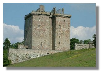 The twin towered fortress of Borthwick Castle was built in 1430 by the first Lord Borthwick, whose sepulchre can still be seen in the old village church. A charter to build the Castle was awarded to Sir William de Borthwick by King James I in thanks for his part in bringing the King home to Scotland after 18 years imprisonment in England. The Castle was built as a stronghold capable of withstanding attack from invaders, particularly the English. The stone used was of the finest quality, with 100 feet walls, 20 feet thick at the base and originally had a moat, drawbridge and portcullis.