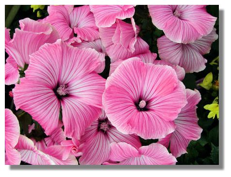 Lavatera is also known as "Tree Mallow" and the shrub varieties can grow as high as ten feet. But this is a smaller annual variety - though it still has the same large and colourful flowers.