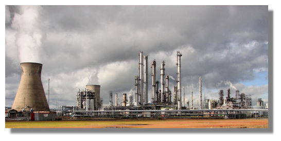 I'm sure central Grangemouth, overlooking the Firth of Forth, is very nice. But to get there you have to pass through miles of refineries and chemical factories, belching steam and other gases into the atmosphere. After dark, even from miles away, the flares from burning gases produced by some of the factories can be seen lighting up the night sky.