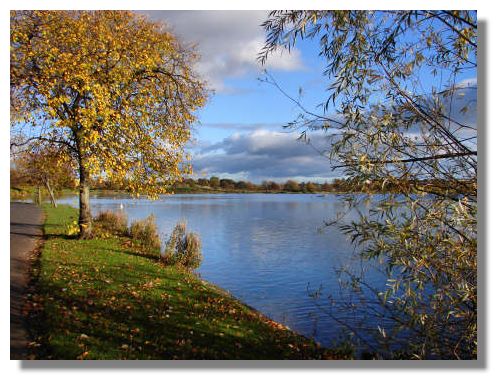 This week's high winds and colder weather have had an impact on the leaves on many trees. This photo was taken in a low autumn sun at Hogganfield Loch in Glasgow.