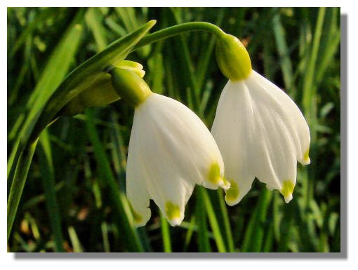 The last of the snowdrop flowers are well gone, but the larger bloomed Leucojum or "Snowflake" appear a bit later in the spring.
