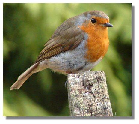 Bold Robins often sit still, posing for the camera, rather than flying away. This one was perched on the back of a wooden seat in a picnic area - a good vantage point for spotting any crumbs!