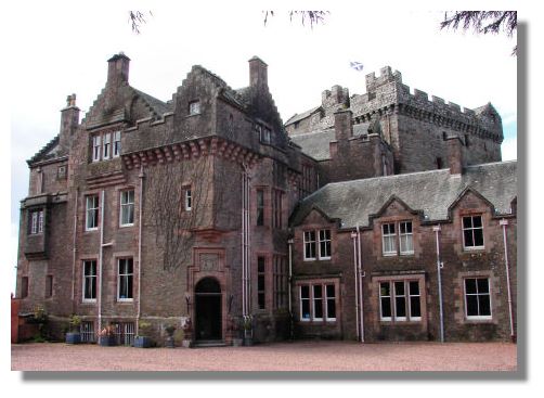 Comlongon Castle, not far from Dumfries, is a massive 14th century tower house, with an even larger 19th century mansion attached. The owners later became Earls of Annandale and even later Earls of Mansfield. It is now a hotel.
