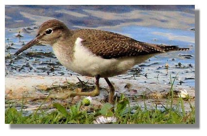 This may be a Common Sandpiper (there are Green and Wood Sandpipers too) but they are not seen all that frequently. They are summer visitors as far as Scotland is concerned, nesting here in upland areas and raising their family before returning to central and southern Africa. As you can see, they are wading birds and are usually seen at the edge of lochs and rivers or on the coast. The numbers of these small birds has been declining in recent years.