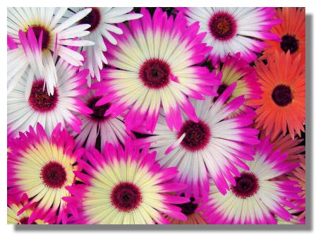 Mesembryanthemum (also known as Dorotheanthus or Livingston Daisy) produce a carpet of flowers from early summer to early autumn. Originating in South Africa, they need a lot of sun as the flowers don't open in the shade or when the weather is dull. Despite Scotland's somewhat unpredictable weather in that regard, they are popular plants here.