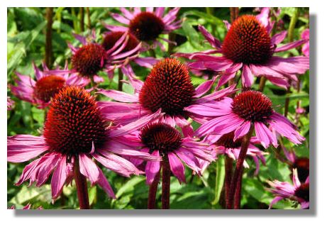 Echinacea - the Cone Flower - comes in purple, pink or white. This striking, tall plant is easy to grow and originated in eastern USA.