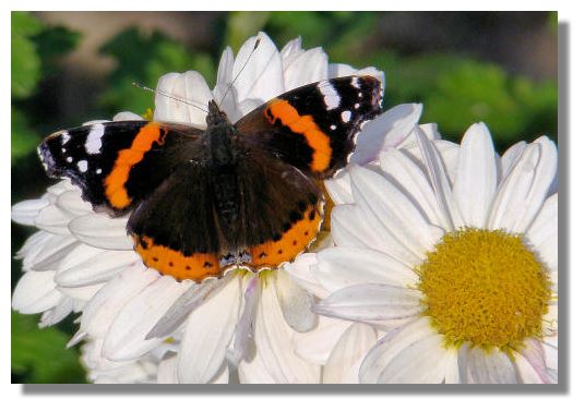 By the end of October it is often too cold for butterflies and those that will overwinter are often tucked away in a sheltered corner. But this Red Admiral was basking on a pure white Marguerite daisy (botanical name is Argyranthemum and it's also known as a Paris daisy). This Red Admiral was one of only two butterflies seen that day in the walled garden of Culzean Castle and Country Park.
