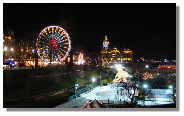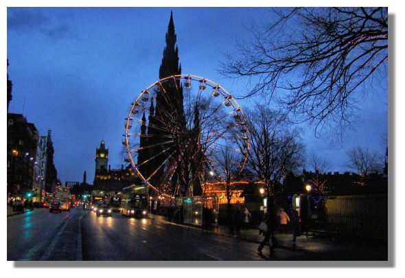This is the general view of East Princes Street Gardens, showing the "Winter Wonderland" ice skating rink as well as the other amusements set up to attract visitors to the city centre at this time of year. Despite the wind and rain, there were quite a number of people at the German Market - but few takers for the skating rink or the Ferris wheel!If you want to look back at earlier editions of this Colour Supplement, there is an Index Page