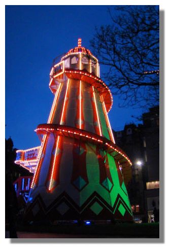 One of the amusements set up to entertain the visitors to Princes Street Gardens at this time of year is this "Helter Skelter". This "British English" term describes a slide built in a spiral around a high tower. Users climb the tower and then slide down, usually on a mat.