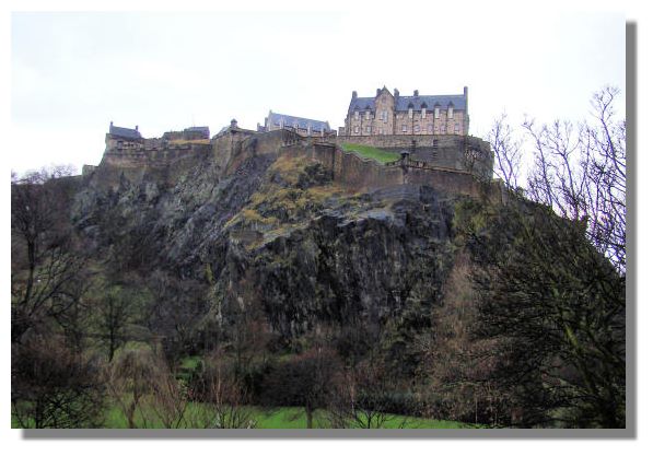 Here is a wintry-looking Edinburgh Castle, with grey skies and the rocks glistening in the rain. In the summer time, Princes Street Gardens below are often bustling with a mixture of tourists and office workers - but there were few folk walking through on the day this recent photo was taken.