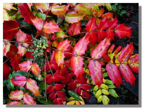 These Mahonia leaves look more typical of autumn than winter - and just to add to the confusion of seasons, it has some flower spikes just about to come into bloom.If you want to look back at earlier editions of this Colour Supplement, there is an Index Page
