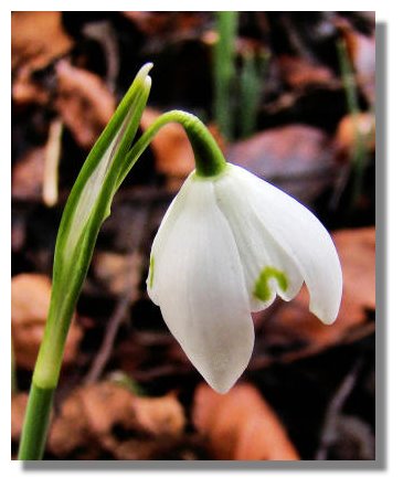 A welcome sign of impending spring is the Snowdrop (Galanthus). It is one of the most widely grown bulbs in many countries, including Scotland. Although this photo is of a single flower, they spread well and often cover a wide area, particularly on grassy banks and in woodlands. This one was growing in Finlaystone Country Estate in Inverclyde. They have a "Snowdrop Walk" for visitors over the next few weeks as more and more come into bloom to form a white carpet