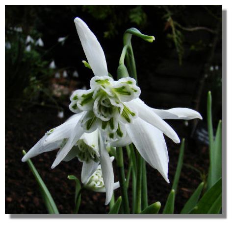 Last week's Colour Supplement included "Jacquenetta", an unusual, double (triple?) snowdrop with green markings at Cambo Estate in Fife. This snowdrop has similar characteristics and has an aristocratic name of "Lady Beatrix Stanley". This is one of many named varieties in the walled garden at Colzium Estate in North Lanarkshire.