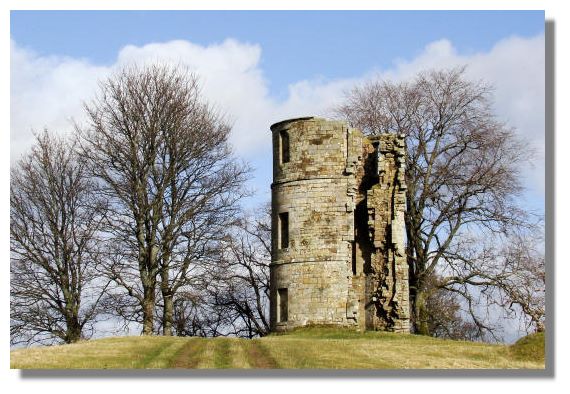 A short distance outside of the village of Douglas is the site of Douglas Castle. Originating in the 13th century, the building was captured by the English invaders in 1307. Sir James Douglas trapped the garrison while they were at worship in the chapel on Palm Sunday and had them put to death in what became known as "Douglas's Larder". Douglas Castle was rebuilt - but was sacked in 1455 by King James II when the Black Douglases and the 9th Earl fell out of favour because they were regarded as too powerful. The "Red" Douglases, the Earls of Angus, had sided with the king against the senior branch of their family, and it was they who gained the Douglas lands in Lanarkshire. It is likely that the castle was rebuilt soon after 1455 as a tower house and an enclosed courtyard with a corner tower. But this was destroyed by fire in 1755. It was subsequently rebuilt in 1757 as a castellated mansion with round towers by the famous Adams brothers - it had similarities to Inverary Castle in Argyll, which was begun about ten years earlier. Had it been completed the castle would have been the largest in Scotland. As it was, the Duke of Douglas died in 1761, and only around half of the original design was ever completed. Sir Walter Scott used the location and early history of Castle Douglas as the inspiration for his novel "Castle Dangerous". The castle is still sometimes referred to by this alternative name - indeed the directions to the castle in the village currently point to Castle Dangerous. Mine workings in adjacent parkland to alleviate unemployment in the 1930s resulted in that building being classed as dangerous and it had to be demolished in 1938. Now all that remains is the ruined corner tower of the penultimate castle, retained as a garden folly when the later mansion was built in 1757.