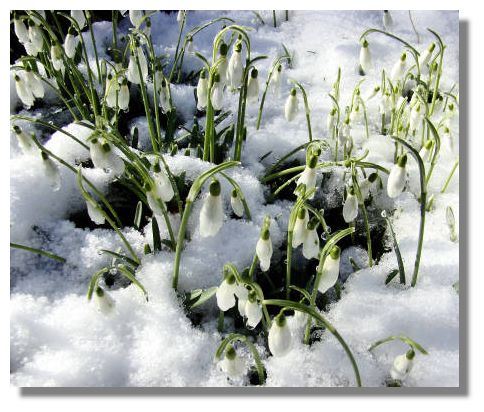 Living up to their name, these Snowdrops are struggling through a light covering of snow.