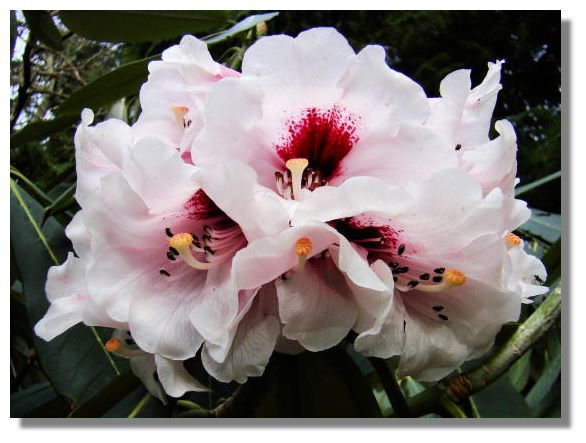 Modern plant breeders can produce Rhododendrons in every flower colour except true blue and they also blend two or more colours to create flares in the throats of the trumpets. This one is also has particularly large blooms.If you want to look back at earlier editions of this Colour Supplement, there is an Index Page
