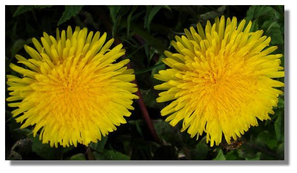 It doesn't seem to matter to Dandelions what the weather has been like, they pop up everywhere, bringing a splash of welcome colour. Because they self-seed so readily, they are treated as weeds in gardens and removed. Yet, as this photograph shows, they can rival many of the more cultivated plants in suburban gardens. Dandelion