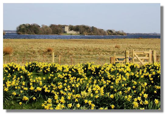 This swathe of golden daffodils would make a good picture on their own, but the historic Loch Leven Castle in the background gives an added dimension to the scene.
