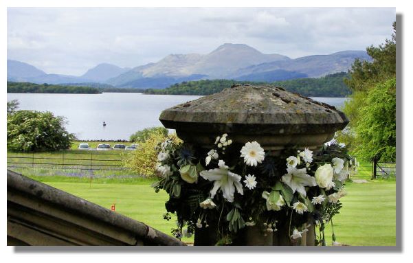 Ross Priory is a popular venue for weddings and/or wedding receptions and clearly there had been such an event on the day before the gardens open day. The garland of flowers round one of the pillars to the entrance to Ross Priory, with Loch Lomond in the background, must have made life easy for the wedding photographer!