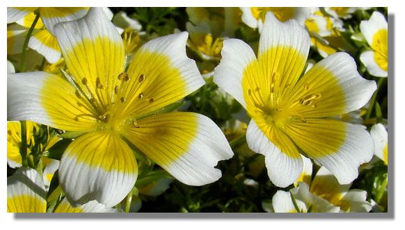 For fairly obvious reasons, the popular name of Limanthes is "Poached Egg Plant". The plant produces profuse blooms, up to 1½" across. As it self-seeds easily, Limanthes can spread rapidly, living up to another nickname of "Meadow Foam". It originated in west North America and was one of the many plants brought back by the Scottish plant hunter David Douglas (1799-1834).