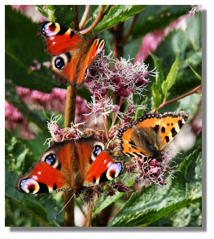 This summer it was hard to find any butterflies - apart from the small and large whites. In recent weeks, even though the weather hasn't improved, they have appeared in good numbers whenever the sun has been shining. These Peacocks and a Small Tortoiseshell were just some of the butterflies to be seen recently in the gardens of Drummond Castle in Perthshire.