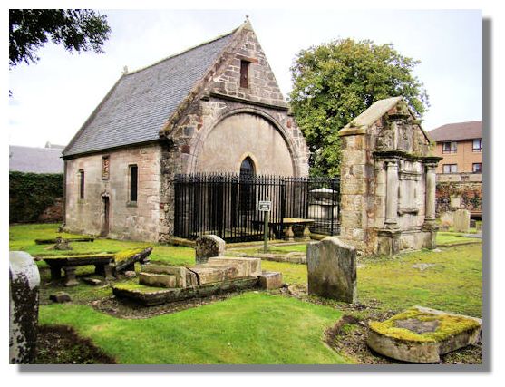 The building seen here in the old churchyard in Largs, Ayrshire, is known as the Skelmorlie Aisle. It was added to the local parish church in 1636 by a local landowner, Sir Robert Montgomerie of Skelmorlie (a village further along the coast from Largs). It was created as a burying place for Sir Robert and his wife Margaret. Most of the church was demolished in 1802 but fortunately the Skelmorlie Aisle was retained - see the picture below to understand why!