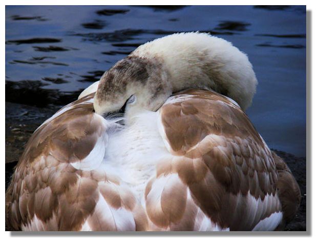 The little bundles of fluffy cygnets that were hatched only a few months ago have grown fast, feeding on just aquatic plants and other vegetation. They are now almost as large as their parents (swans are one of our largest birds) and the initial brown feathers are beginning to give way to the white of adult swans. This cygnet was photographed last Saturday, having a snooze beside the appropriately named "Swan Pond" at Culzean Castle Country Park in Ayrshire.If you want to look back at earlier editions of this Colour Supplement, there is an Index Page