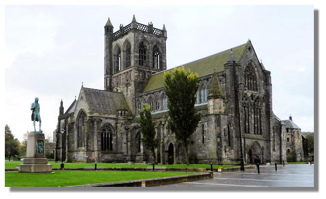 The charter to establish the priory at Paisley, seven miles from Glasgow, was signed in 1163 by Walter FitzAlan, in Fotheringay Castle in England. The priory, which was sited on a church founded by St Mirin around 560AD, was raised to the status of abbey in 1245. Six generations of the FitzAlans were the hereditary High Stewards of Scotland. Walter, the sixth to hold the office, married Marjory, daughter of Robert the Bruce in 1315. Marjory died within a year of the marriage, following a riding accident but her baby was born by a crude form of caesarean section and became Robert II, the first of the Stewart monarchs. All six of the High Stewards are buried in Paisley Abbey and Marjory's tomb is in the Abbey too. In succeeding centuries, fires and the collapse of a tower caused considerable damage and parts of the abbey lay open to the skies for 350 years. It was not until the 19th century that it was re-roofed and a number of walls were restored.