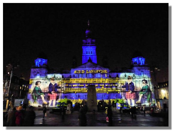 "Auld Lang Syne" by Burns is now sung around the world at New Year's Eve celebrations and other occasions when we want to remember absent friends. The light show in George Square was shown last Friday, Saturday and Sunday evenings. On the final day, there was also a host of live performers, including the Red Hot Chilli Pipers, former Pop Idol winner Michelle McManus and country dancers to entertain onlookers.