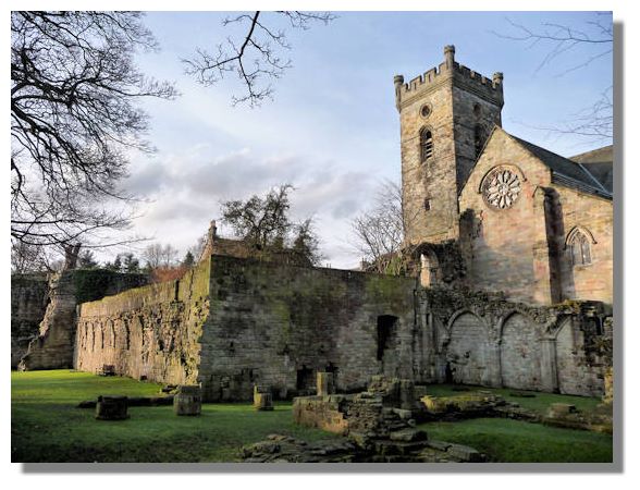 On the outskirts of Culross is an abbey which was founded in 1217 by Malcolm I, Mormaer or Earl of Fife. Culross may have been chosen to establish an abbey because this was reputed to be the birth place of Saint Mungo (also known as Kentigern), the patron saint of Glasgow. It is also possible that the abbey was built over an earlier Pictish church, founded by Saint Serf in the 6th century. In 1633 the east choir of the abbey was taken over for use as a parish church, while the adjoining buildings (seen in the foreground) fell into decay.