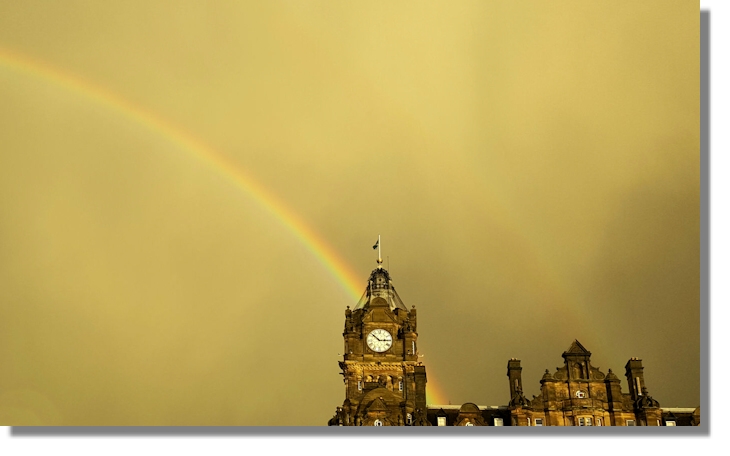 The sunshine in the pictures above didn't last for long and clouds and showers rolled in but at least the resulting rainbow set behind the Balmoral Hotel added to the colourful scene.