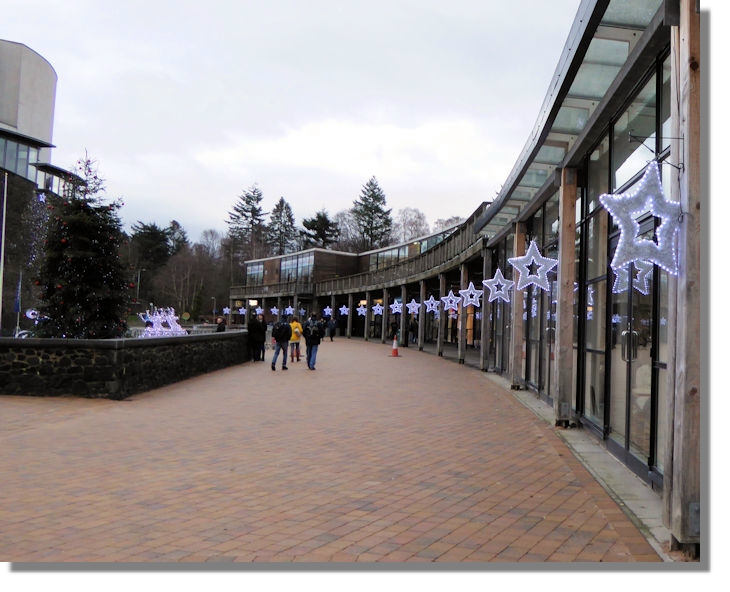 The individual retail shops at Lomond Shores didn't have to compete with one another as far as Christmas decorations were concerned as they were all provided with a standard illuminated star. This picture was taken mid-morning so there are not a lot of shoppers around but by lunch time the retail units were busy, especially the branch of Jenners the up-market Edinburgh store that opened here some years ago.