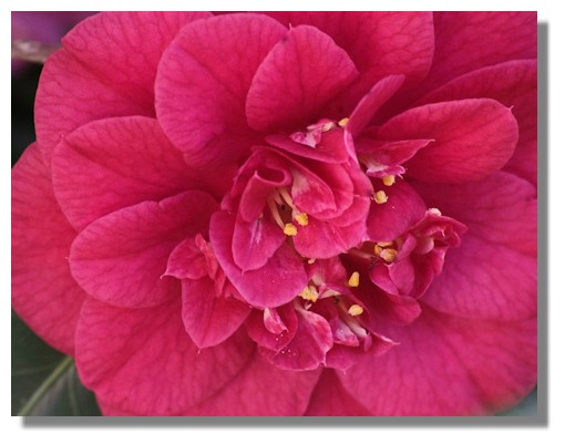 It was quite hard to find a camellia blossom that hadn't started to turn brown. Unusually mild weather for April has hastened that process, but this bloom, away from direct sunlight, had managed to retain its pristine petals.