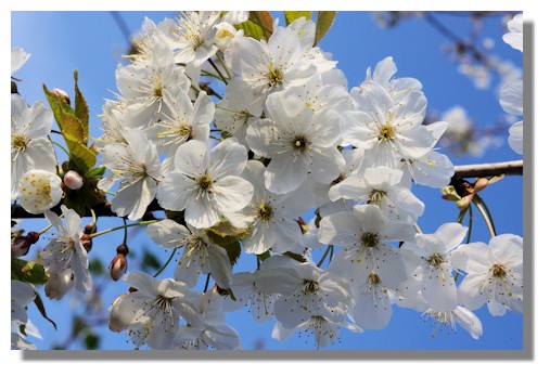 Cherry, cherry plum, pear and apple blossom are all becoming prominent now - I can never tell the difference at this stage and tend to just call them all "cherry blossom" unless I know from previous years what fruit (if any) is produced!