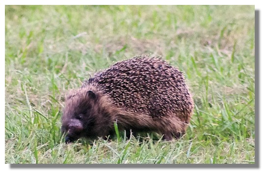 It was heading towards dusk when we eventually were walking back to the car to head home when my wife (eagle-eyed as always) spotted a brown shape shuffling through the grass in a field beside the pathway. It was a great surprise to realise it was a hedgehog. It's many years since we've seen a hedgehog in the wild, far less one near enough to get a photograph! It seemed quite unconcerned by us watching it and taking many pictures as I tried to get one where it's head was showing above the grass! Hedgehogs sleep for a large part of the day either under cover of a bush or grass, or in a hole in the ground. They only come out at dusk or at night. In the UK, wild hedgehogs are considered an endangered species. But a single hedgehog can keep an average garden free of pests by eating up to 200 grams of insects each night! So in the UK people attempt to lure hedgehogs into their gardens - if they can find one! But they have become a pest in the Outer Hebrides of Scotland where they have been blamed for a decline in native ground-nesting birds as they will eat their eggs. Instead of trying to kill the hedgehogs there, however, the policy has changed to trapping them and releasing on the mainland.