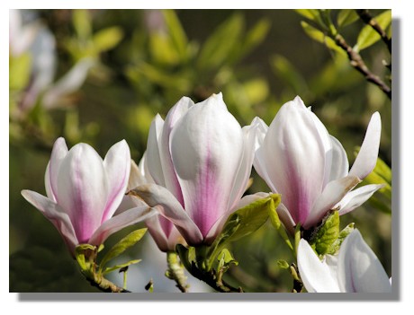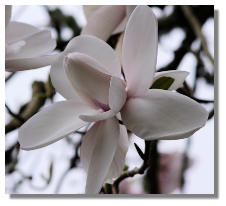 Like the camellias, the magnificent, tall magnolia flowers in Culzean Country Park are now almost over for another year, and the ground is now covered in their fallen petals. However, I did manage to get a photograph of this row of magnolias, high in the branches of a slightly later flowering tree.