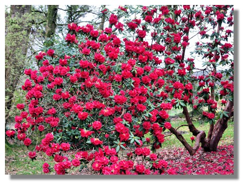This is a photo of the rhododendron bush which produced the close-up in the previous picture.