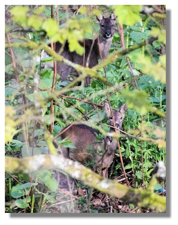 Late in the afternoon we were about to head home when my wife suddenly stopped and slowly pointed. At first I couldn't see anything (I did say that my wife has excellent eyesight) though to be fair, I was looking for a butterfly... Then I saw the two faces of roe deer peering through the trees. Normally these shy creatures would have turned a fled immediately but for a few minutes they just stood and stared at us - until eventually their natural instincts took over and all we could see were two white tails bounding off through the trees!