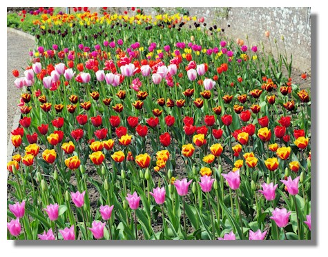 The plants grown in the walled garden at Culzean are varied from year to year and this year they seem to have majored on a collection of various types of tulips. You can just picture me going from row to row taking pictures of each one. Just as well I use a digital camera or I could have used a roll of film just on the tulips!