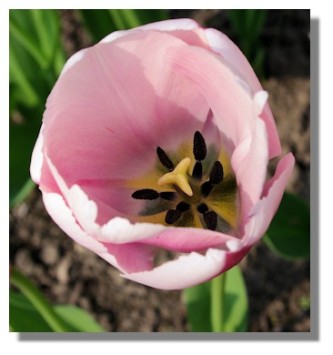 Another striking tulip was "Artist" which is salmon pink with green and has a distinctive non-traditional shape for a tulip.